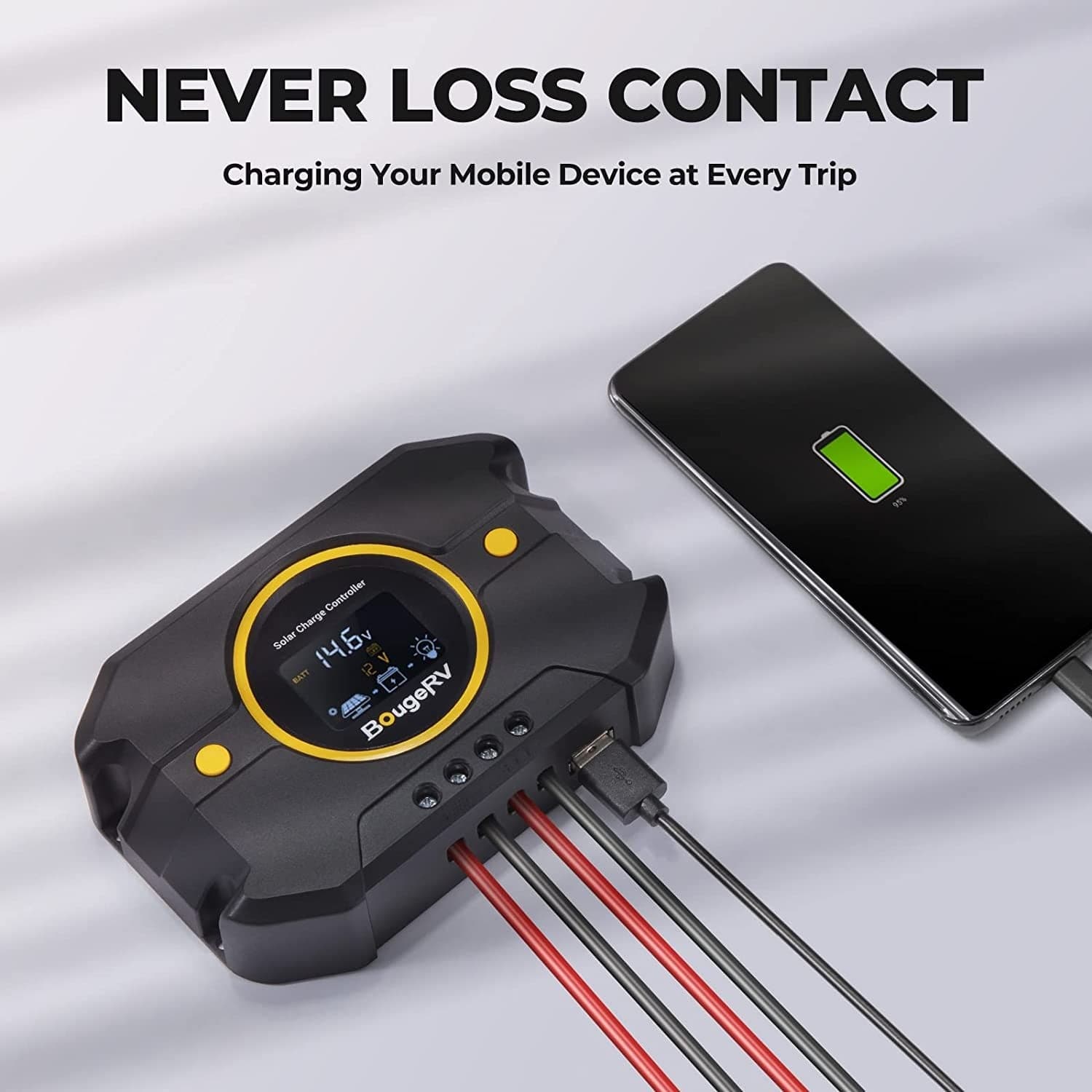 Experience reliable solar power with the 12V/24V Li-ion 20A PWM Solar Charge Controller (Built-in Bluetooth). Safely charge your lithium battery while exploring off-grid adventures. This compact controller ensures efficient charging, protecting your battery from overcharging and overheating. Ideal for solar lights, home systems, and camping gear.